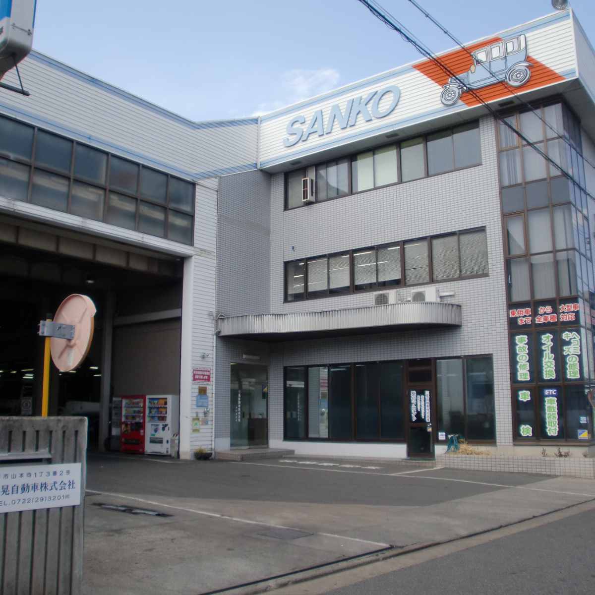 三晃自動車は、大阪府堺市堺区と兵庫県神戸市東灘区に工場を構え、鈑金・塗装・点検・整備・架装など、大型車両に関わるサービスをワンストップで提供しています。