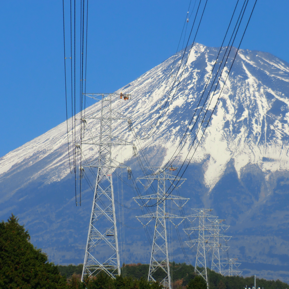発電所で発電された電気は、特別高圧送電線(7,000ボルト以上)を通して送り届けられています。